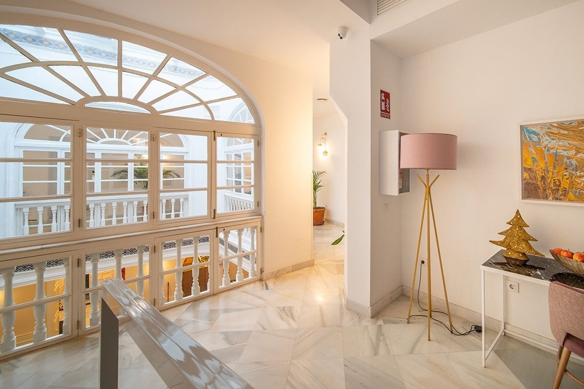 Tanto la iluminación natural como la artificial, con exclusivas lámparas arañas de cristal de roca, y los tonos piedras, claros y oscuros, generan un ambiente acogedor, complementado con elementos de confort como los suelos madera y las ventanas insonorizadas de maciza madera de iroko natural, con tapaluces y vidrios climalit.